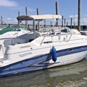 She features a SS bimini top and full boat cover, cockpit sink, Sirius/XM capable stereo CD player, bow &stern swim ladder, extended swim platform, depth instrument. porta potty, pressurized fresh water,