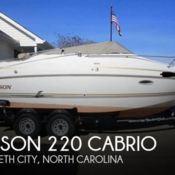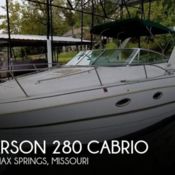 You are bidding on a 2000 Larson 290 (29') Cabrio cruiser. This boat has been well cared for and maintained. It has been a fresh water boat for most of its life and has recently had a number of upgrades (listed below).* Engines and drives - (2) 5.7 ltr V8 (upgraded from 5.0) that have both been rebuilt (starboard about 4 yrs ago, port last August); both carbs have been rebuilt; has trim tabs but will need hydraulic fluid added to reservoir for them to work (we have never used/needed them); new port water pump and both engines have new impellers; Volvo SX drives were sanded and refinished end of last season; both drives have stainless props; engines have low hours, total of ~390 (~20-30 since rebuilds); also new alternator on port; motorized hatch; updated risers/manifolds; 2 newer batteries; small hot water heater